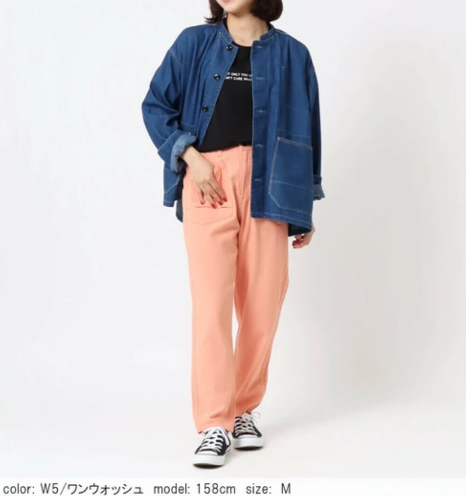 全体的にゆったりしたオーバーサイズシルエットで、抜け感を演出しつつ、体型もカバーしてくれます。羽織るだけでサマになるスタンドカラー仕様のカバーオール。ヴィンテージの本格的なディティールを落とし込んだ洗練されたデザインです。ステッチも効かせ、女性が着ても無骨になりすぎない、季節の変わり目に活躍する軽アウターです。