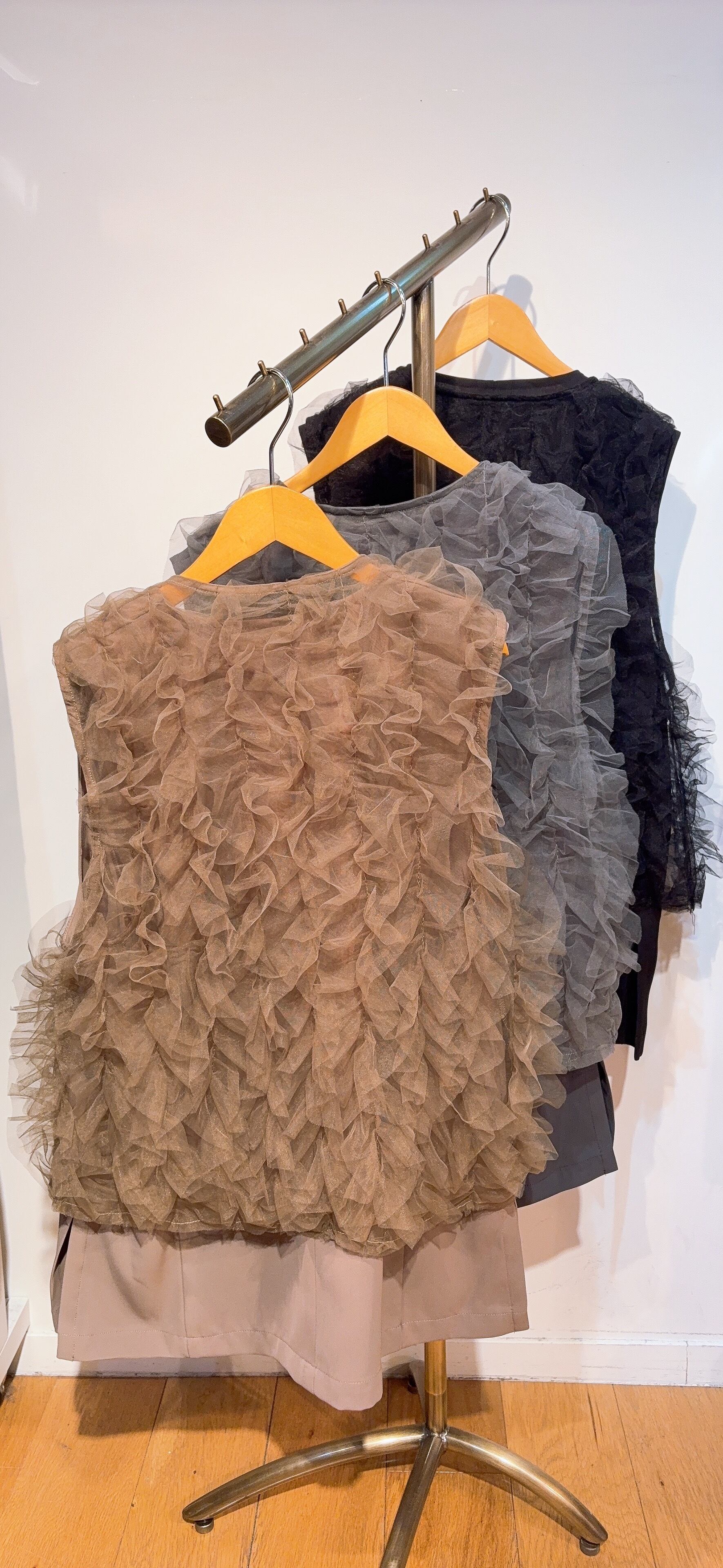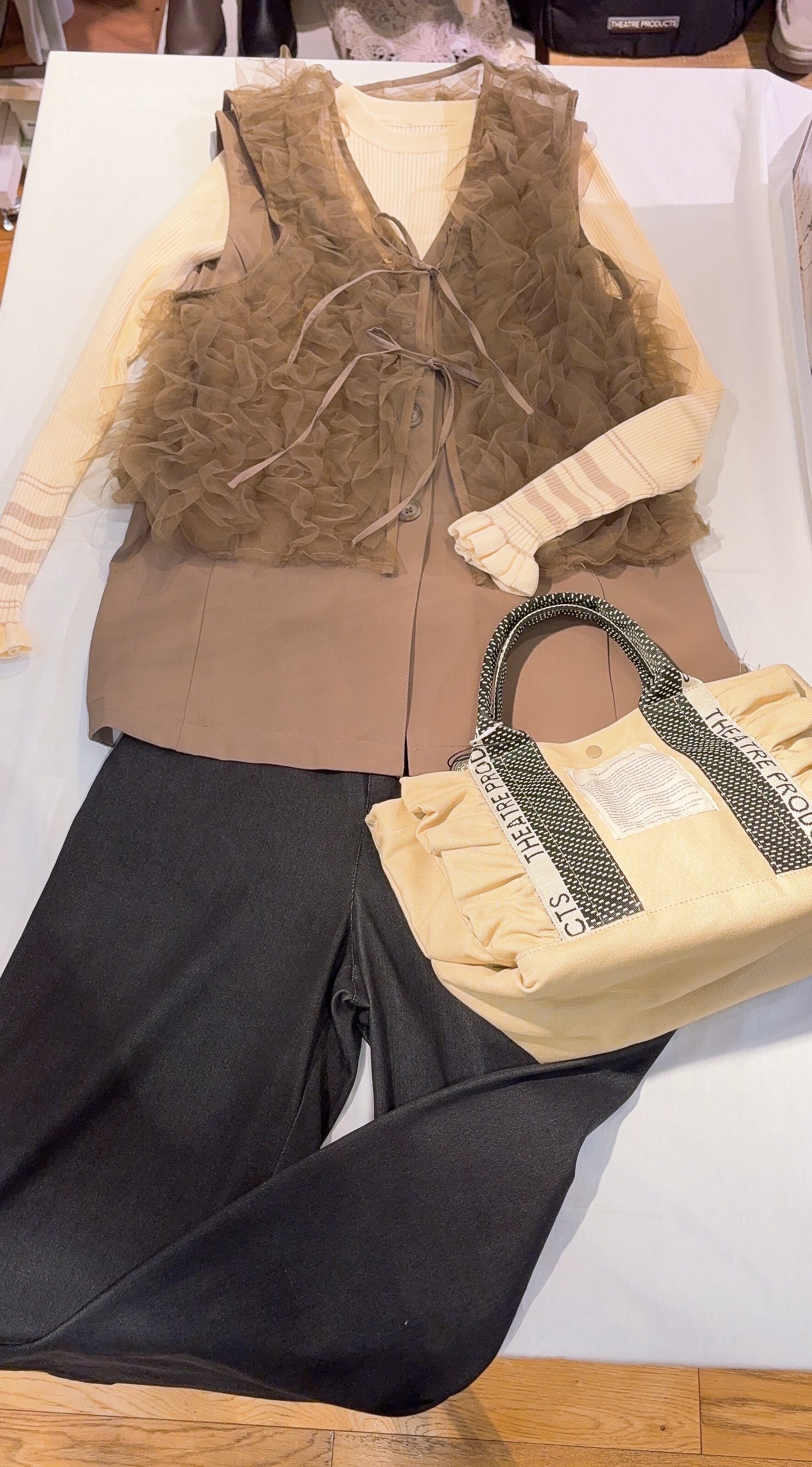 フリルチュールジレを重ねたスタイルでもいいですし、それぞれ単品使いも出来ます!