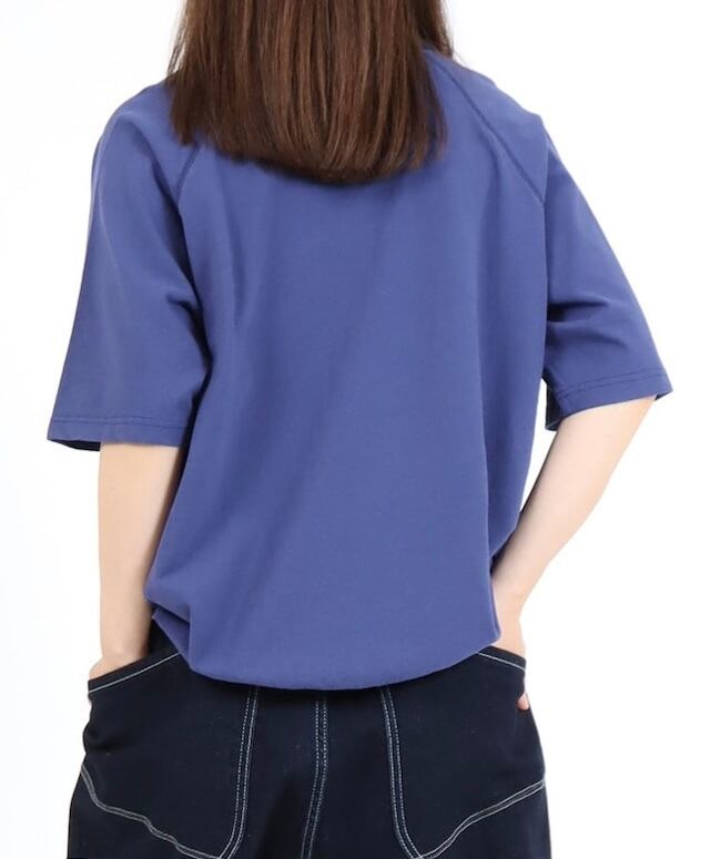 軽量かつカシっとした膨らみのある風合いが魅力。ゆったりメンズライクなシルエットと、膝丈の袖や裾リブでヴィンテージスウェット風の