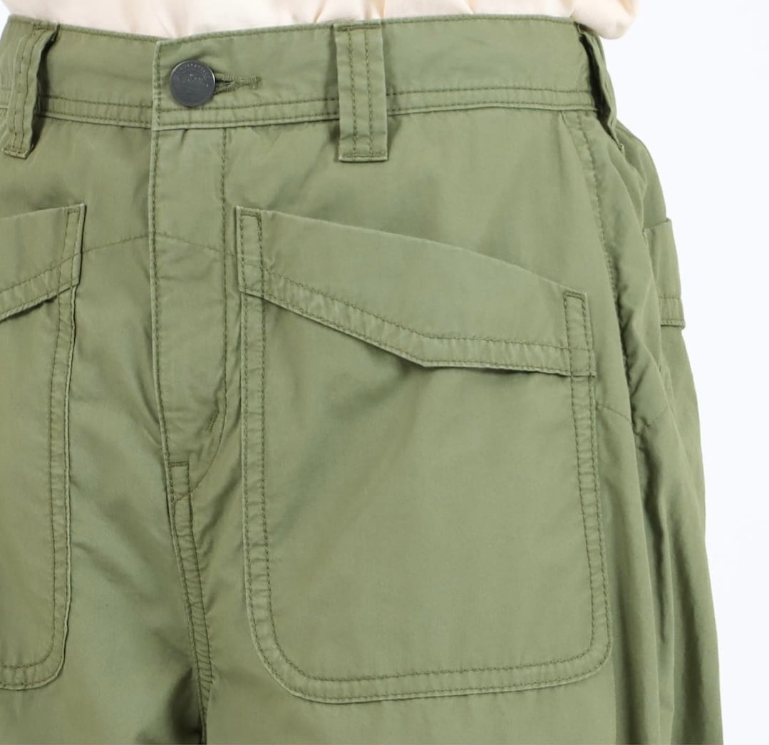 前後の大きめポケットがミリタリーテイスト満載!カーブを取り入れた柔らかなデザインが