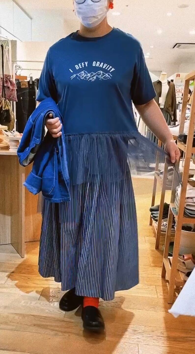 チュールのふんわり感と長めの丈で腰回りと