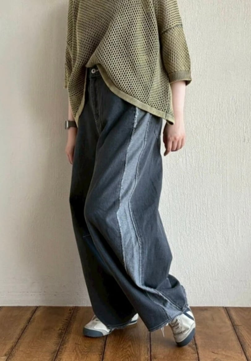再入荷 zampa 10ozデニムバレルシルエット断切りラインパンツ 0137 ザンパ パンツ