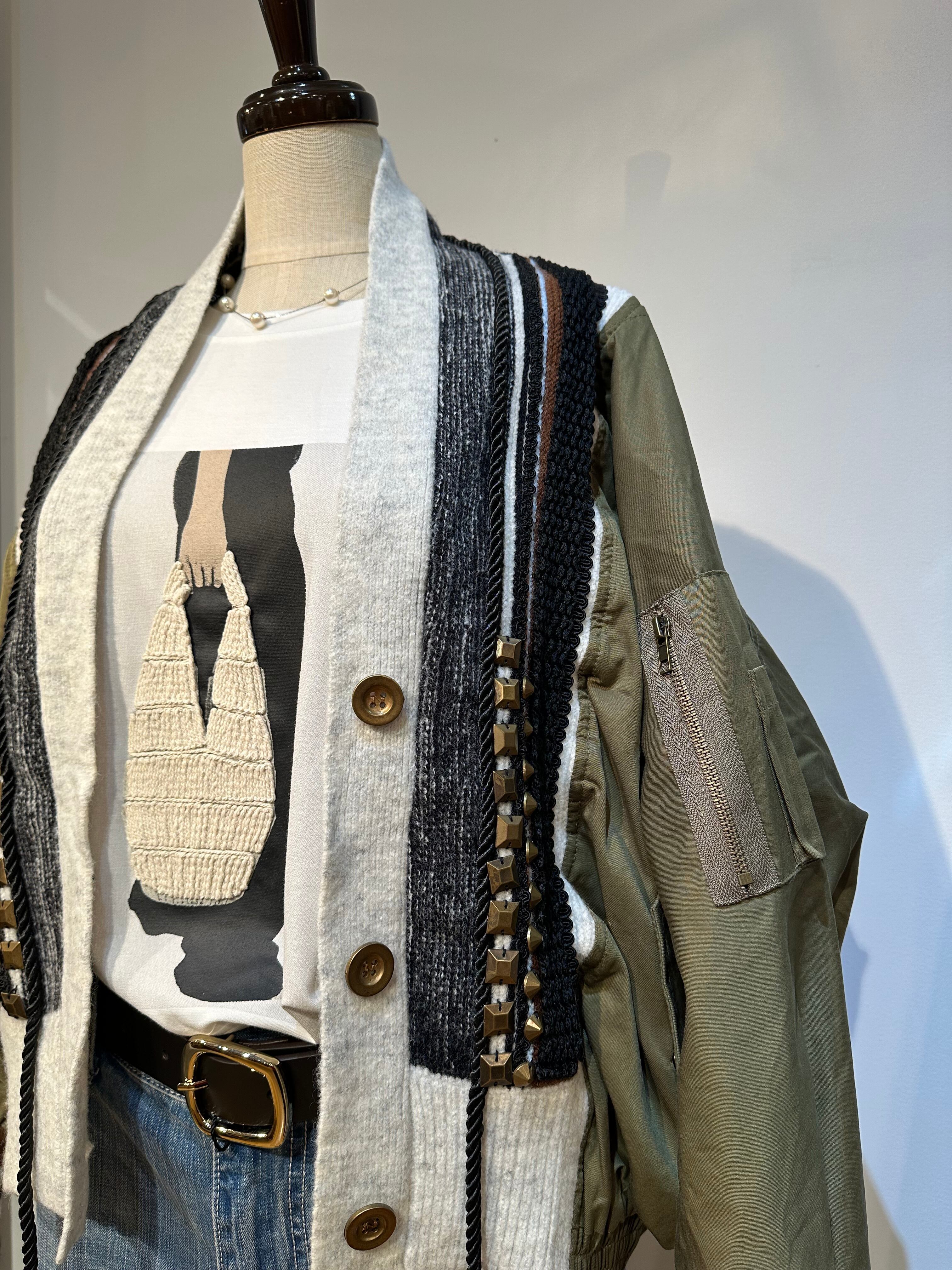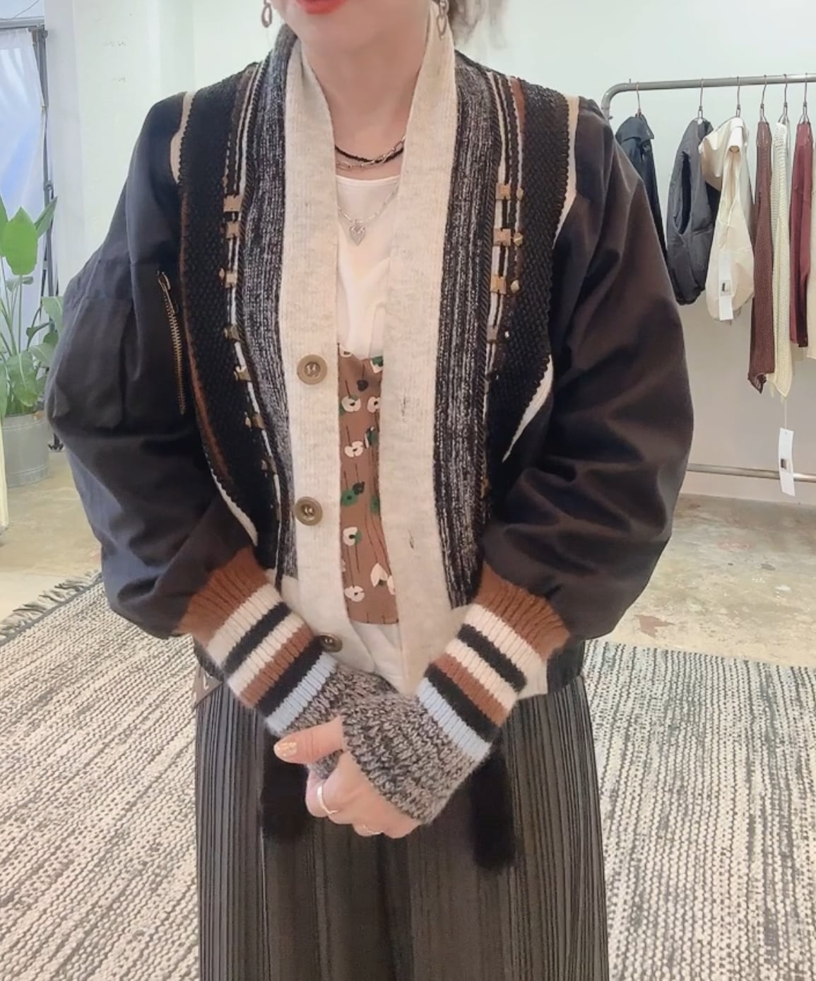 可愛いニットとコットンの切り替えジャケット(ブルゾン)が届きました。