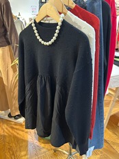 上部分と、袖は小さめのドットが施されており、大人可愛いです。ウエストより高めの位置より切り替え、ギャザーが入れているのはお腹周りをカバ一してくれます。