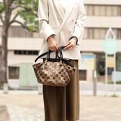 目立ちすぎない柄物のバッグはコーディネートの邪魔にならず使いやすい。