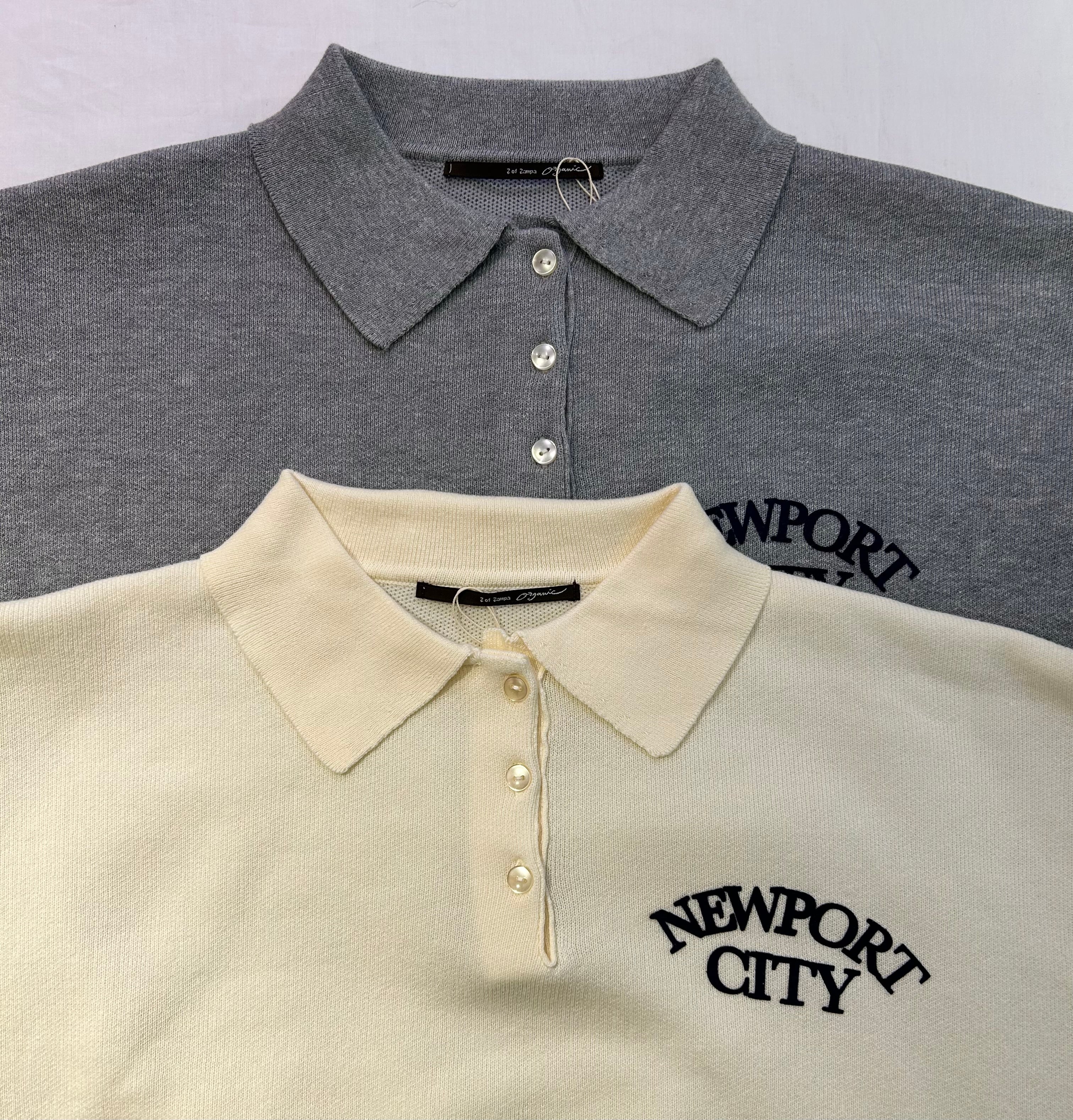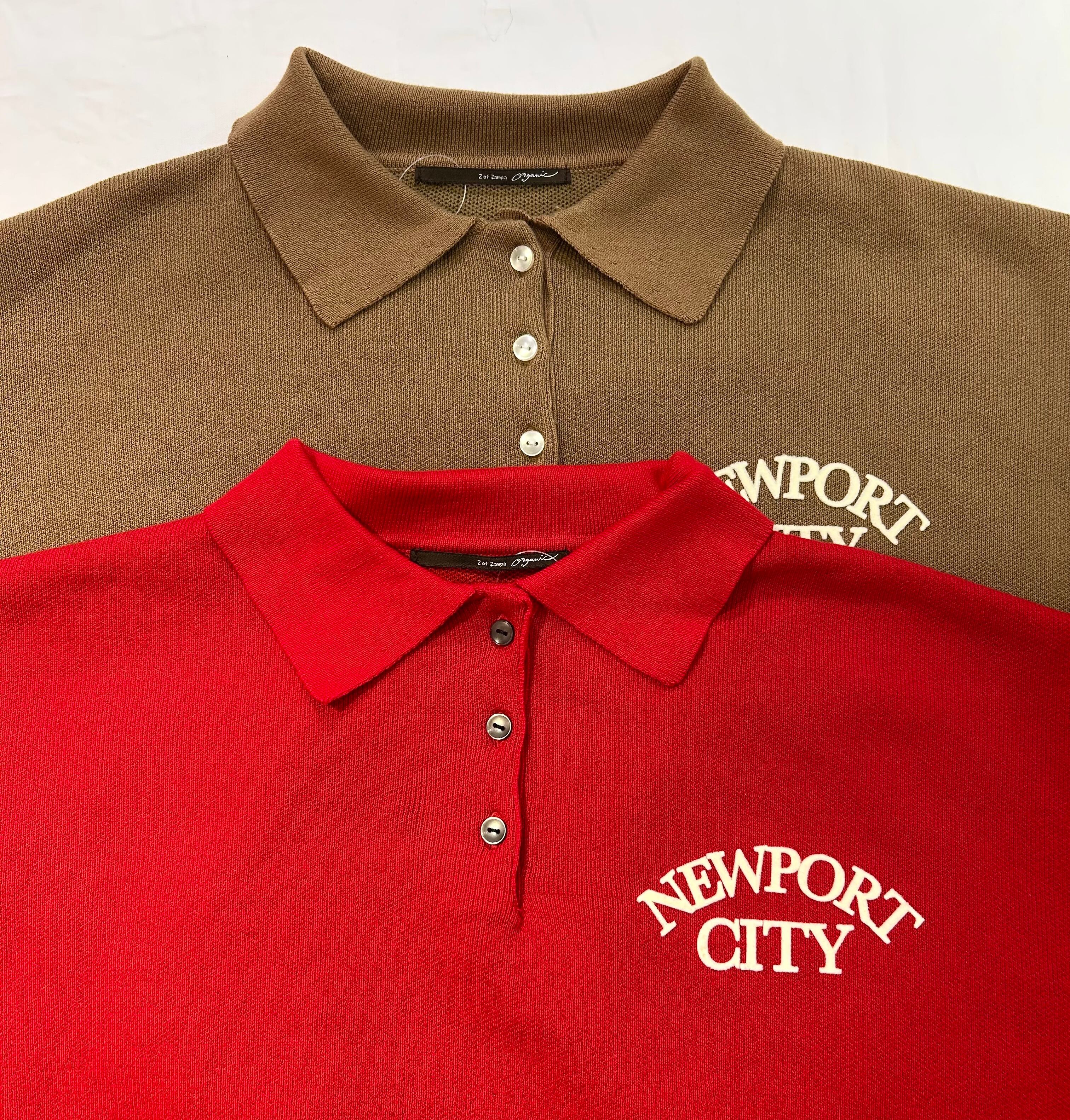 アメリカ都市名のロゴが入ったニットポロシャツ