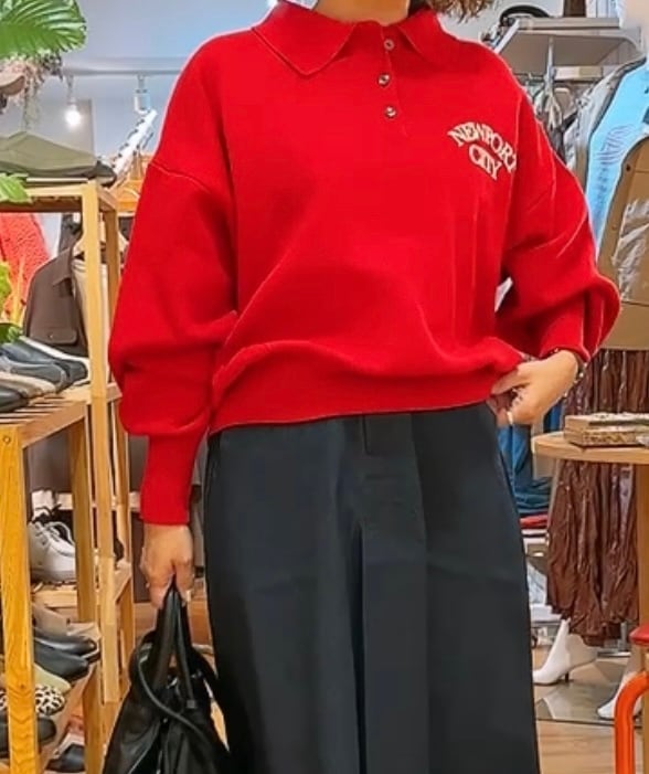 zampaで毎年定評のあるスウェットライクニット素材の襟付きプルオーバー