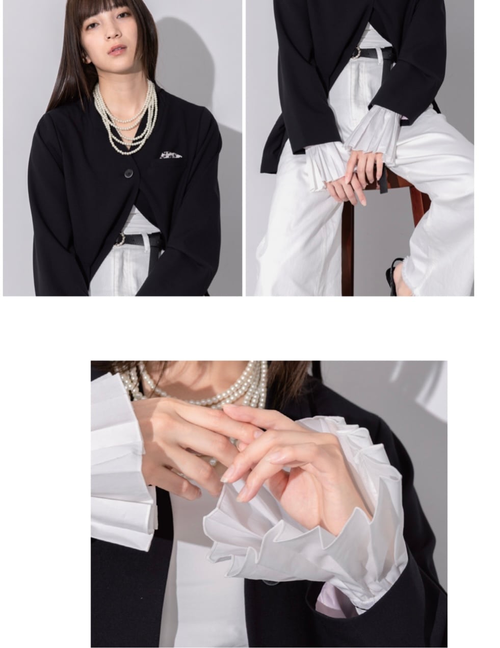 カフスが取り外し可能になった襟付きトップスブラウス。