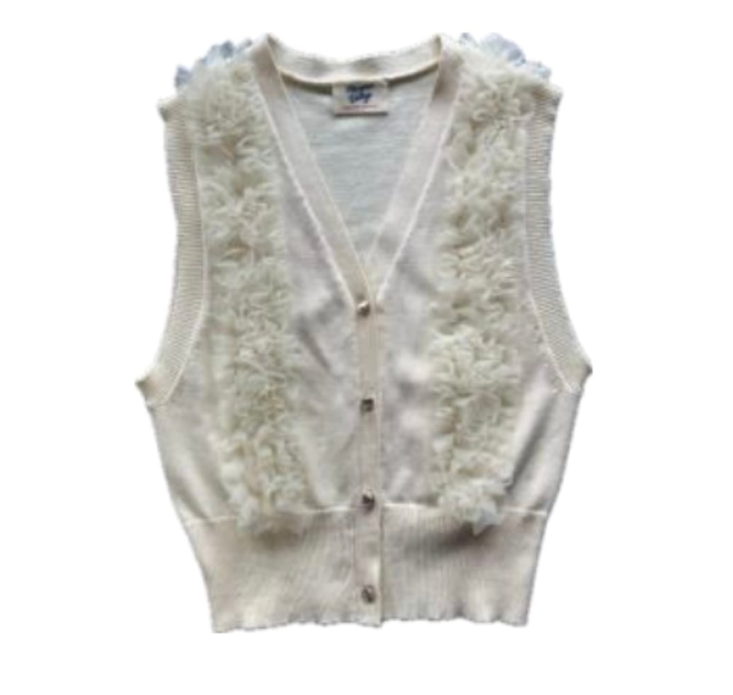 チュール素材のフリルがついたニットベスト