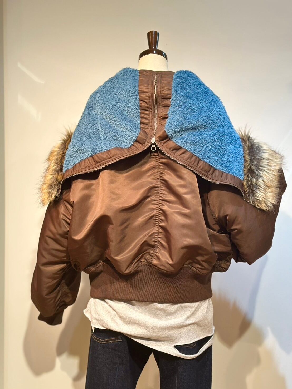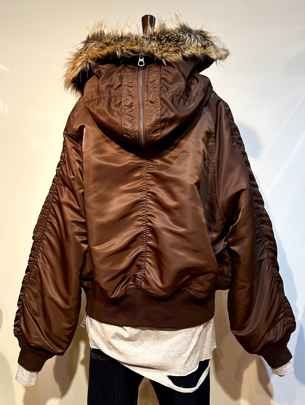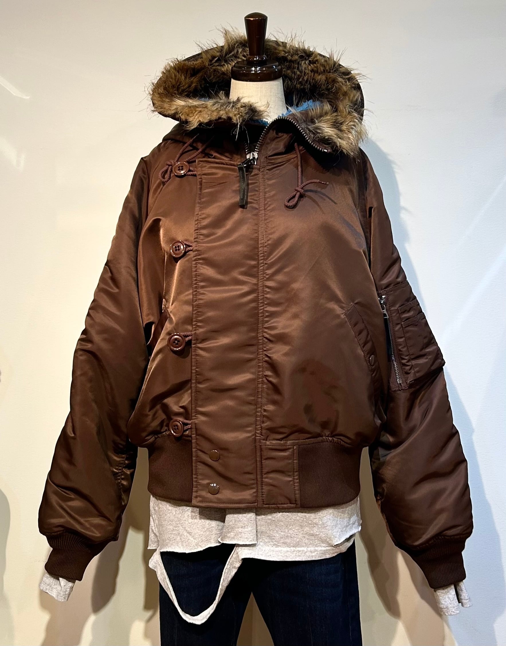 N-2B (20世紀1950年代初頭にアメリカ陸車が極寒地用に開発したショート丈のフライトジャケット)をレディースでもザックリと羽織れるようにアレンジしたものです⭐︎