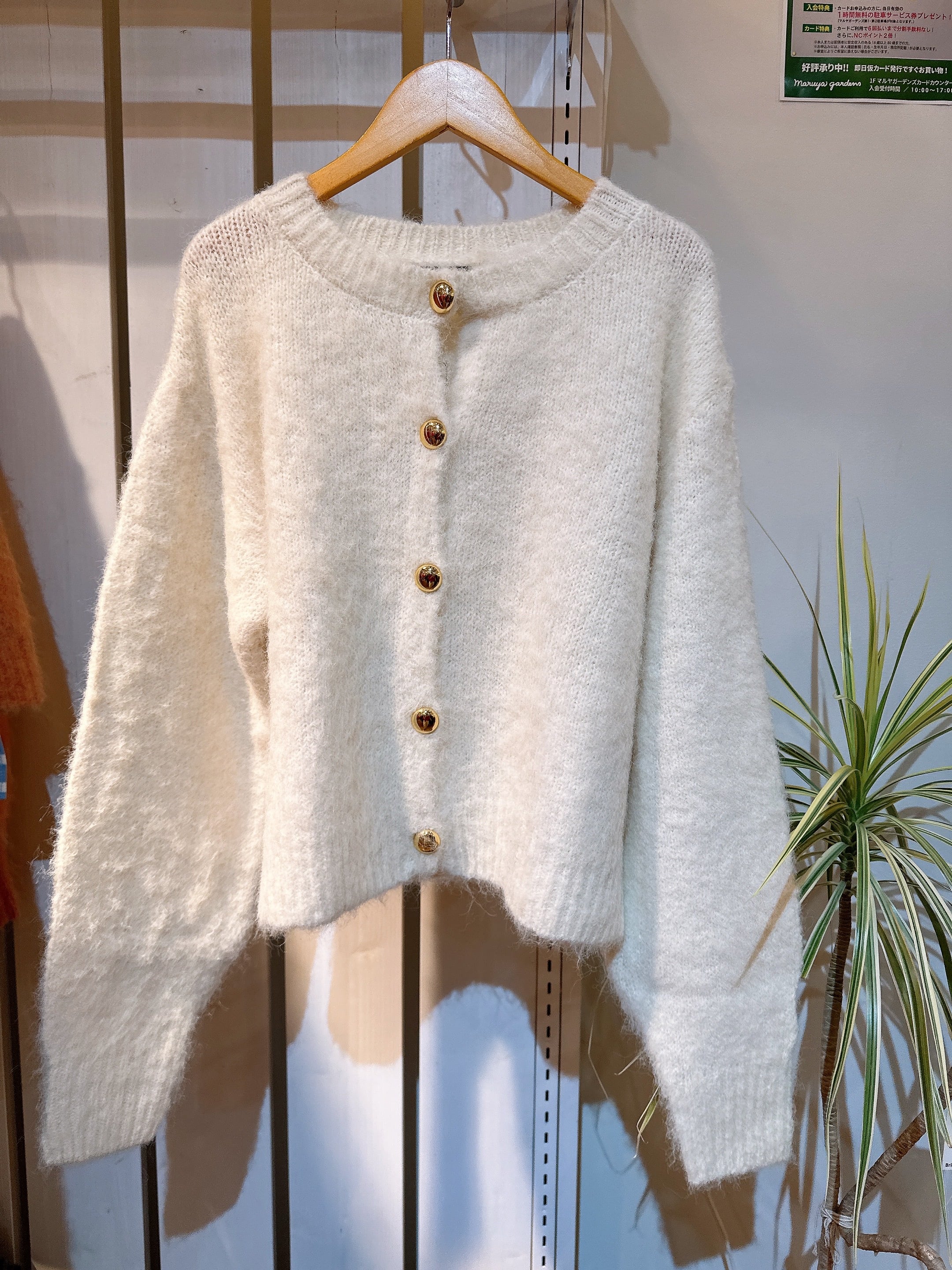 zampaより可愛いカーディガンが入荷いたしました!ゴールドボタンがポイントです。