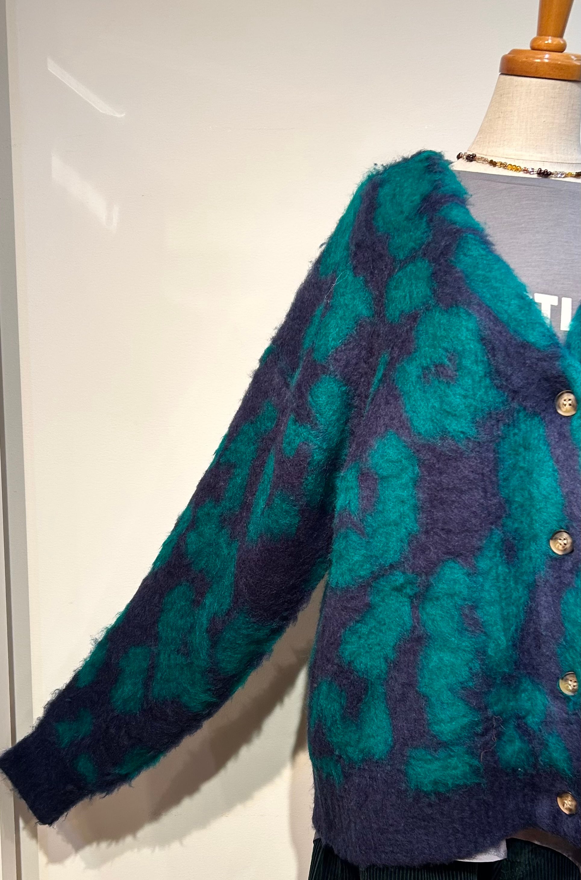 zampa シャギーレオパードJQ Vネックカーディガン 0463 ザンパ カーディガン