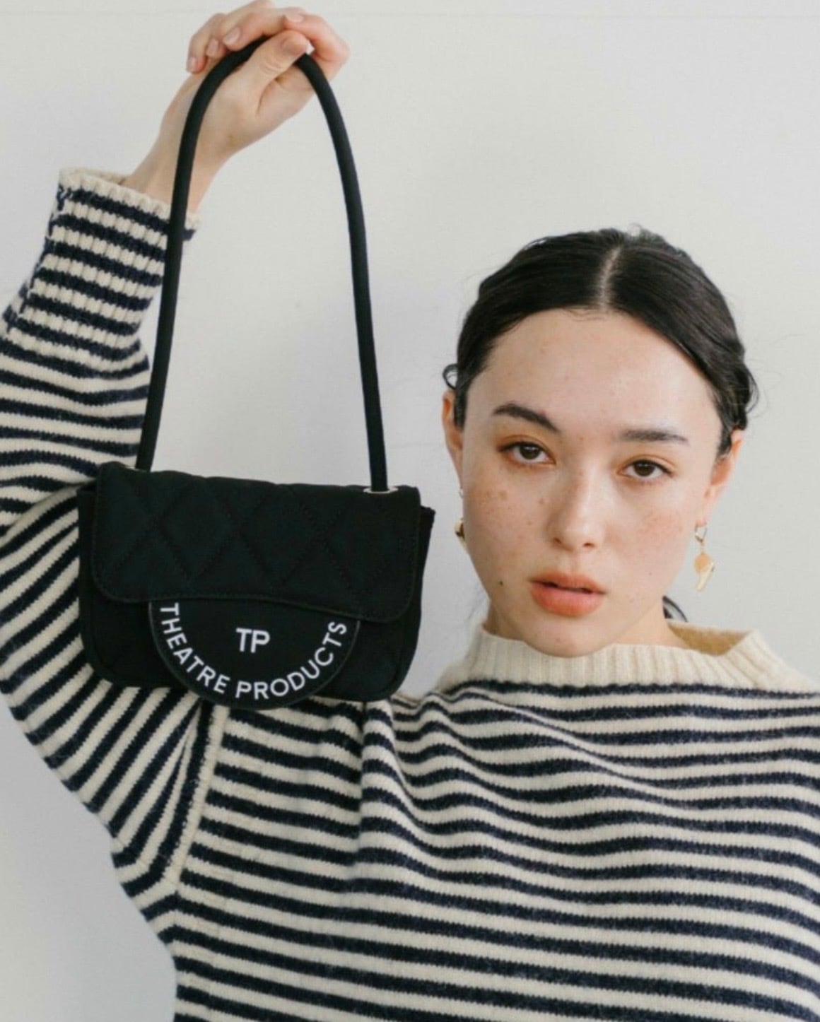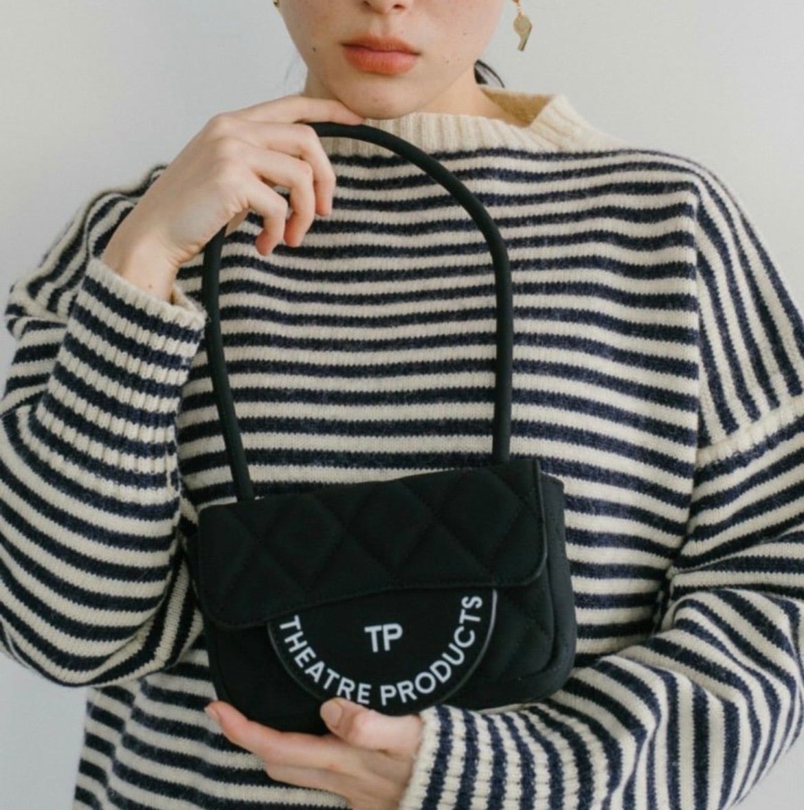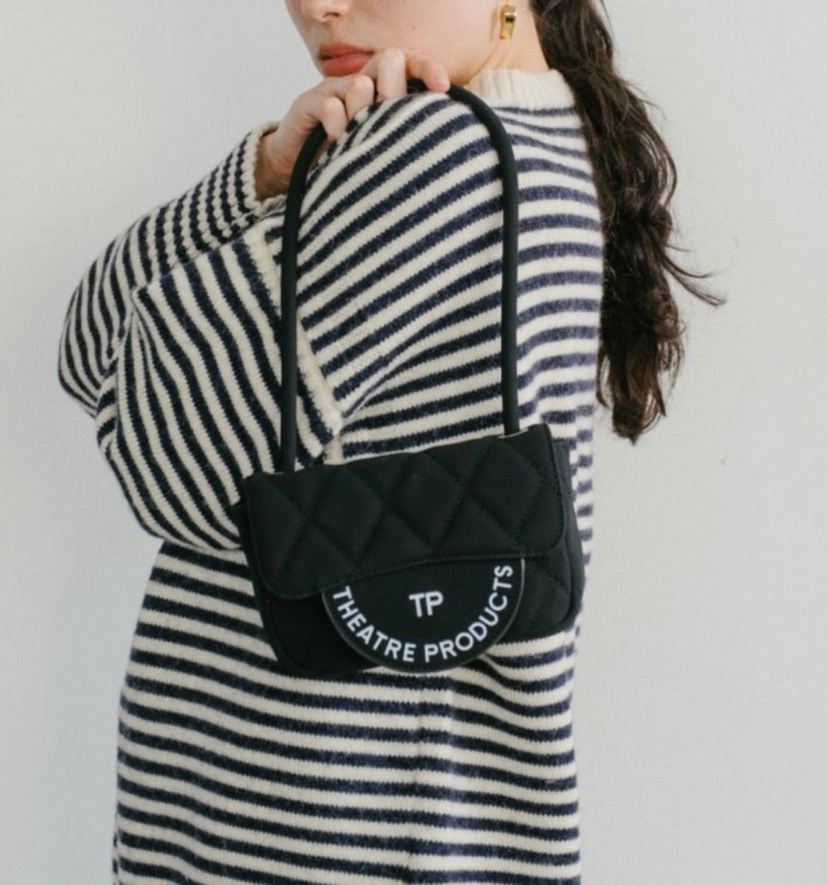 ロゴが目を引くハンドバッグ。