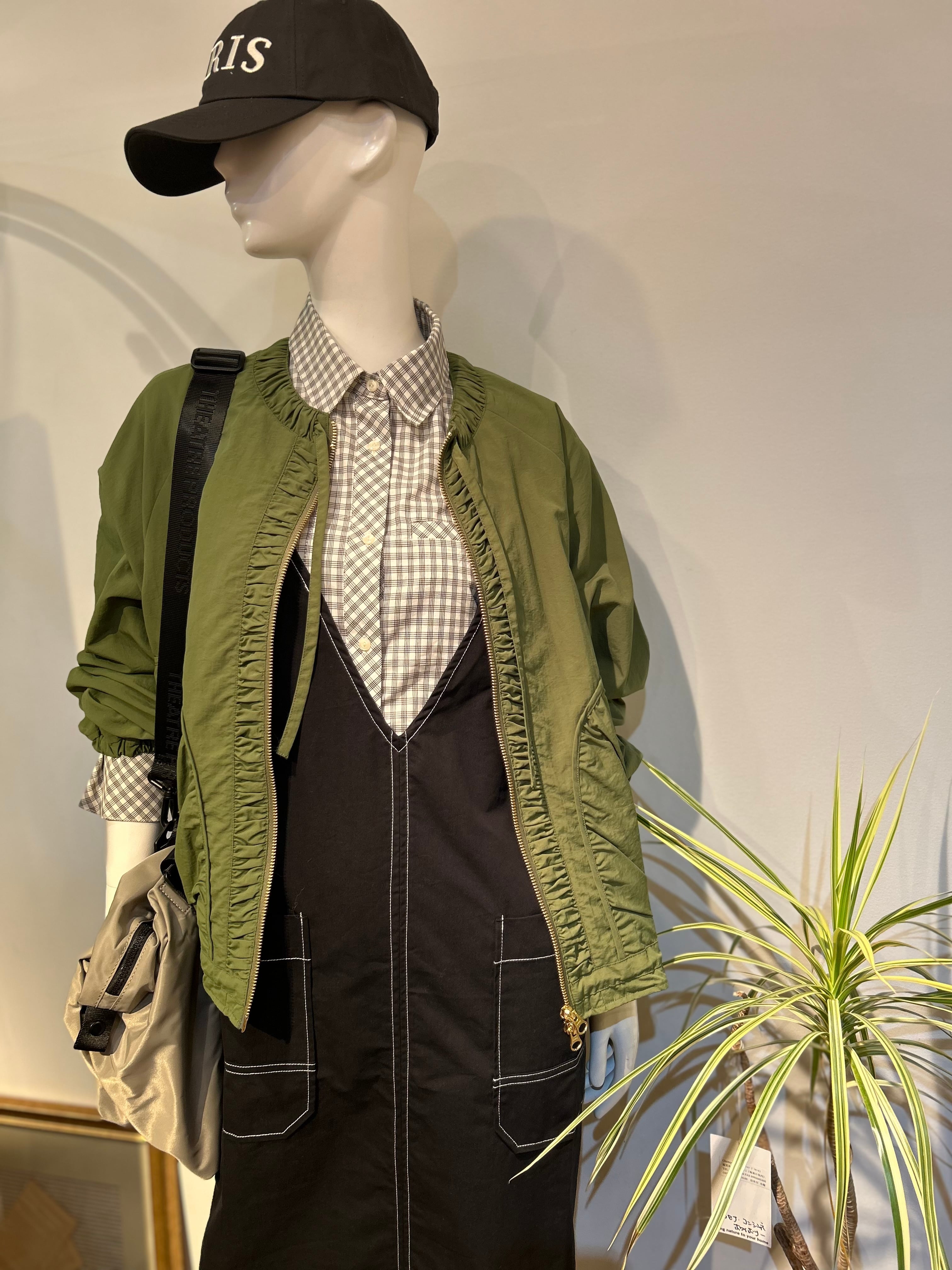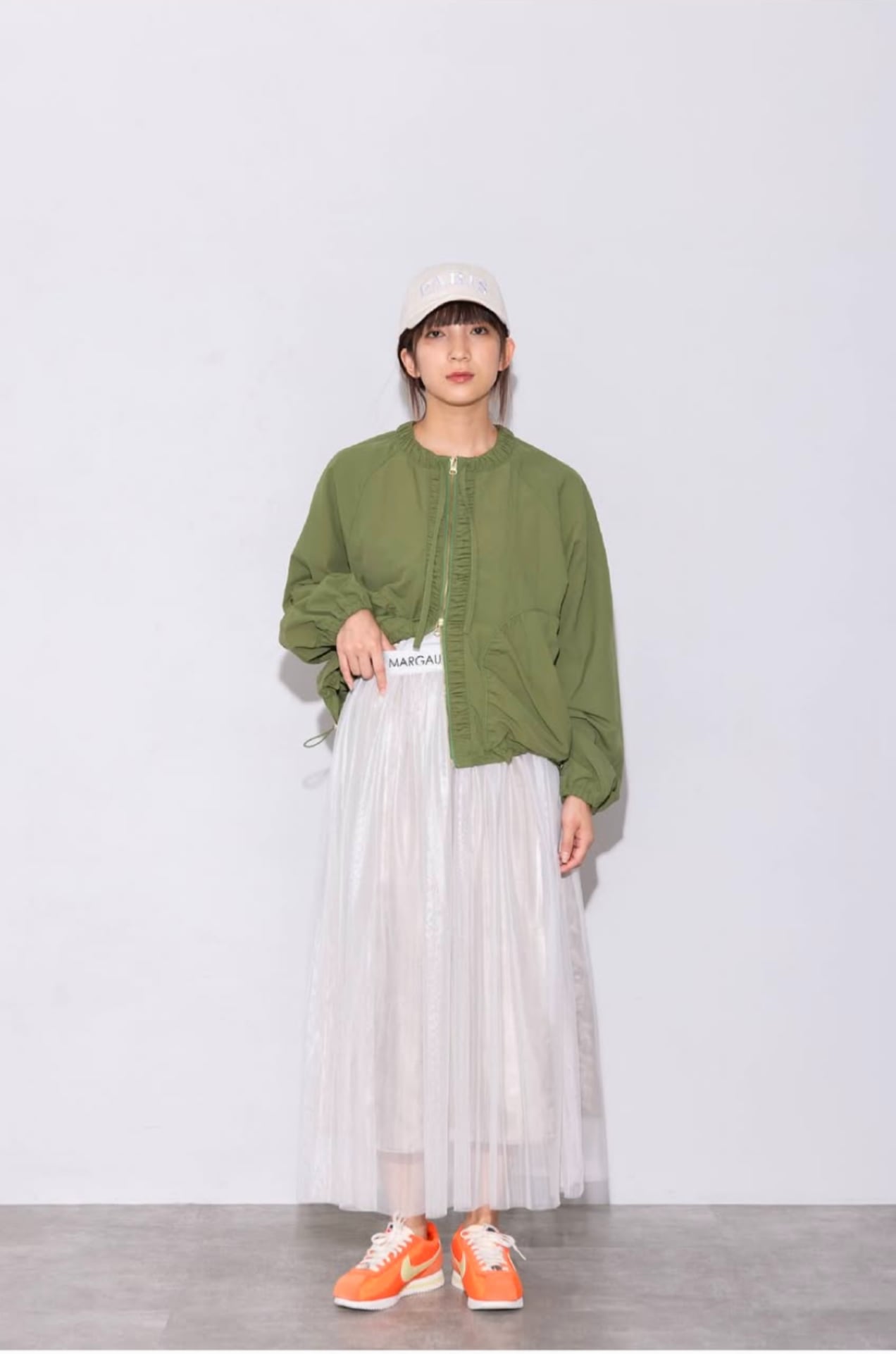 さりげないスタイルのポイントとなりすっきりとした丈感です。裾は、ドローコードで調節可能です。今からの時期、お手持ちのコーデにプラスで新鮮でご活躍します。