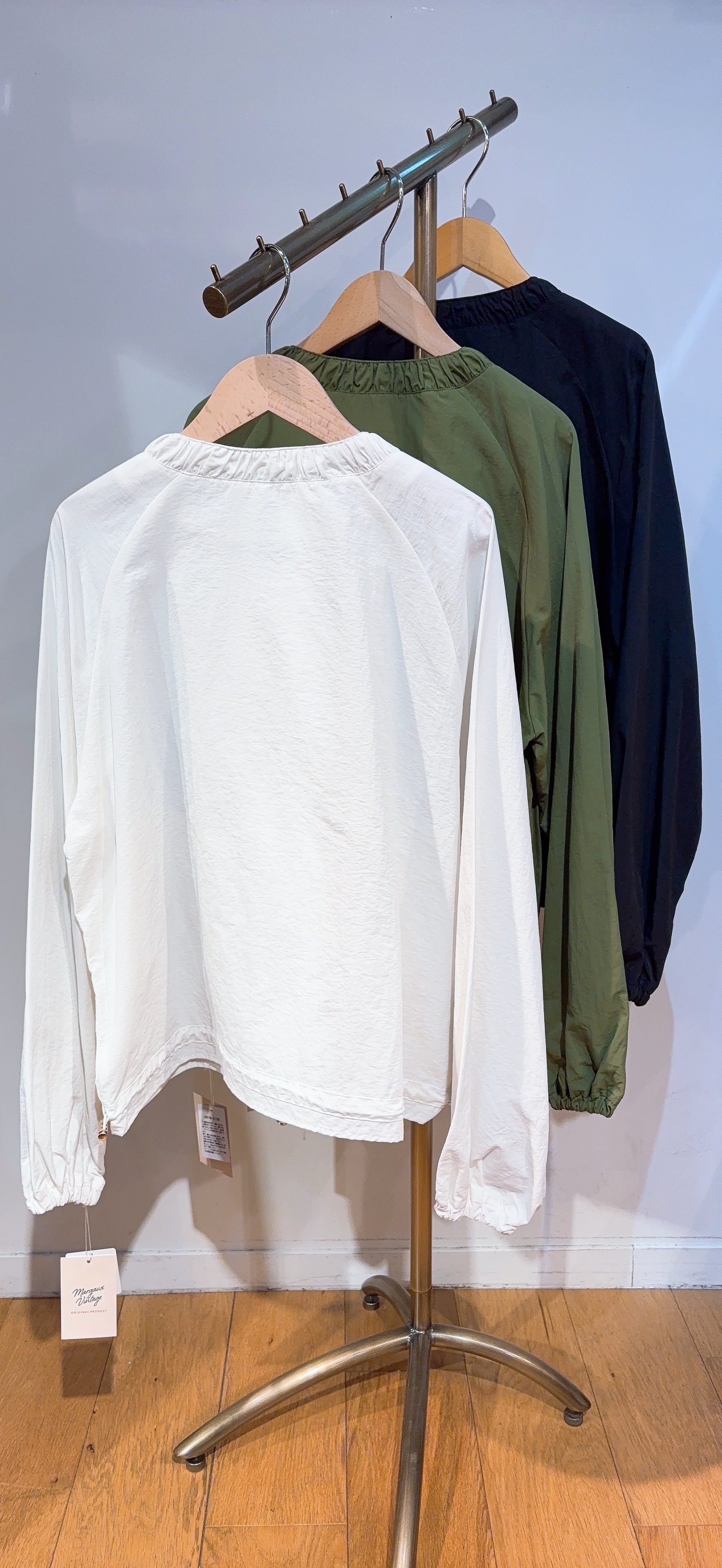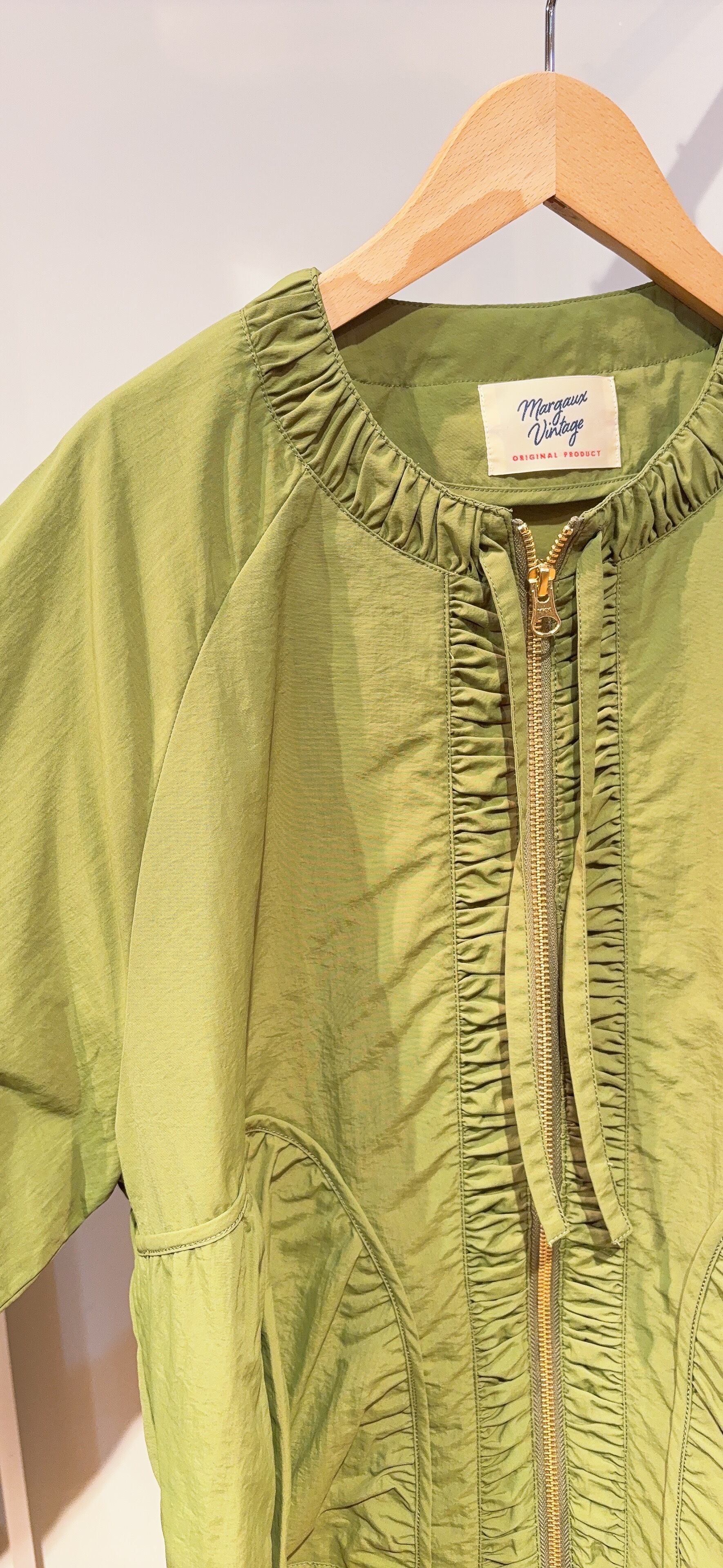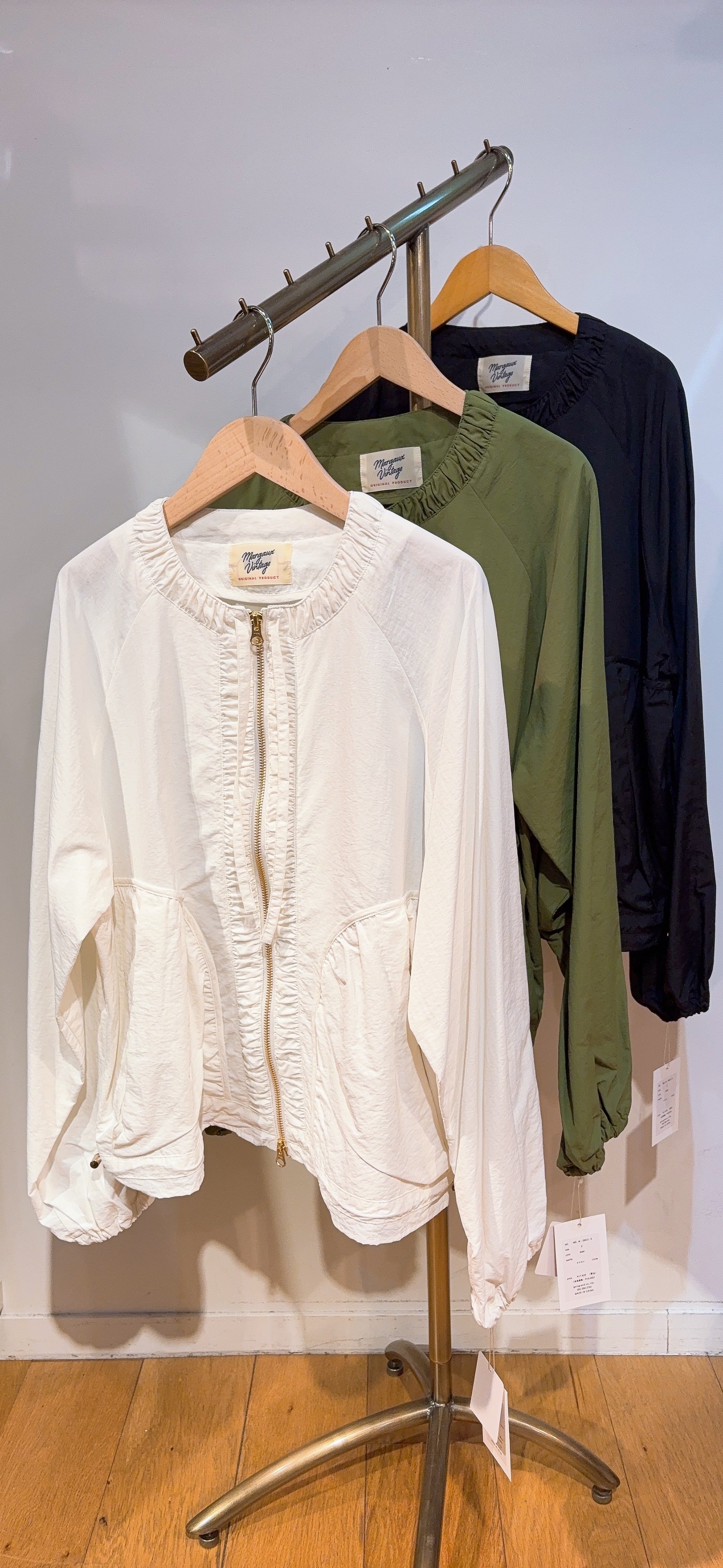 ナイロン素材のmargauxのノーカラーブルゾン。シンプルながらも洗練されたデザインで、スタイルを選ばず幅広く活躍します。軽やかな着心地が特徴で、春先や秋口にサッと羽織るのに最適です。