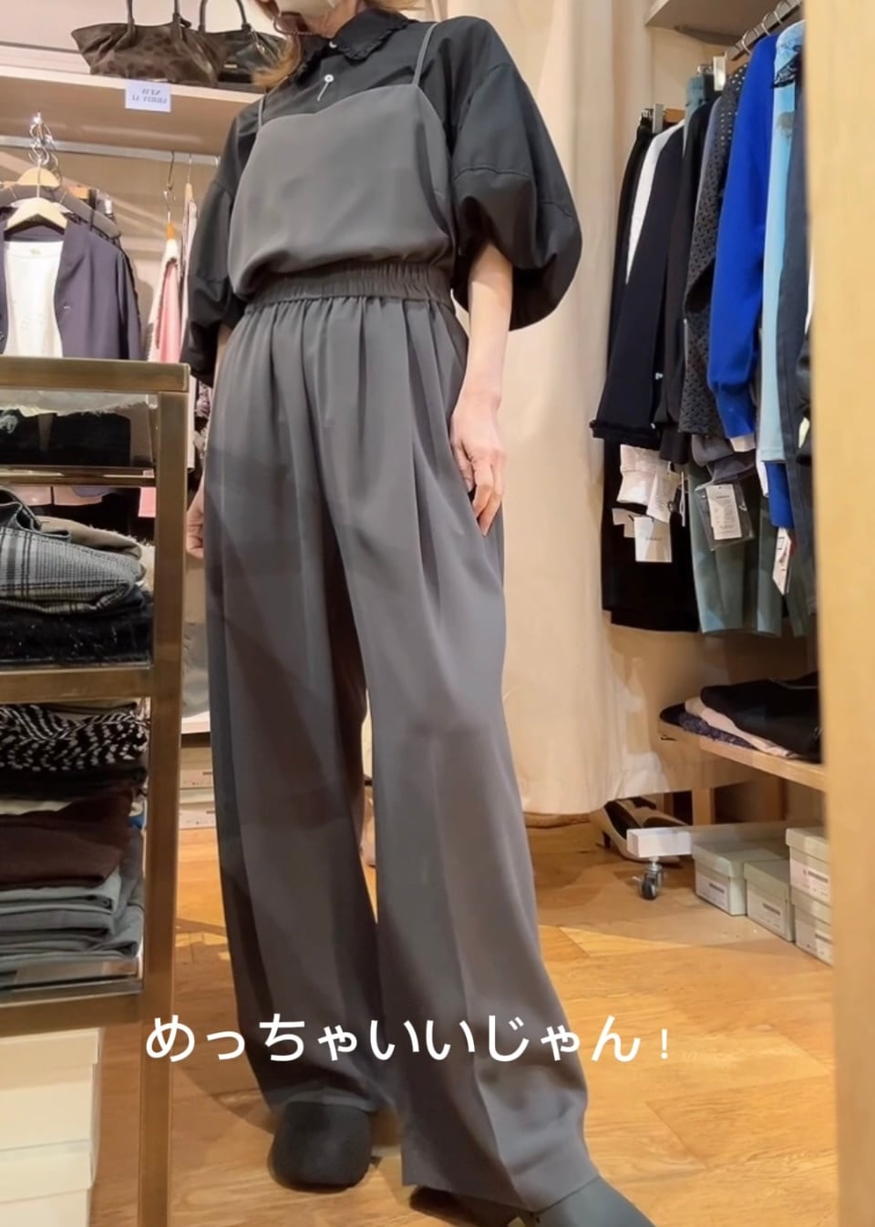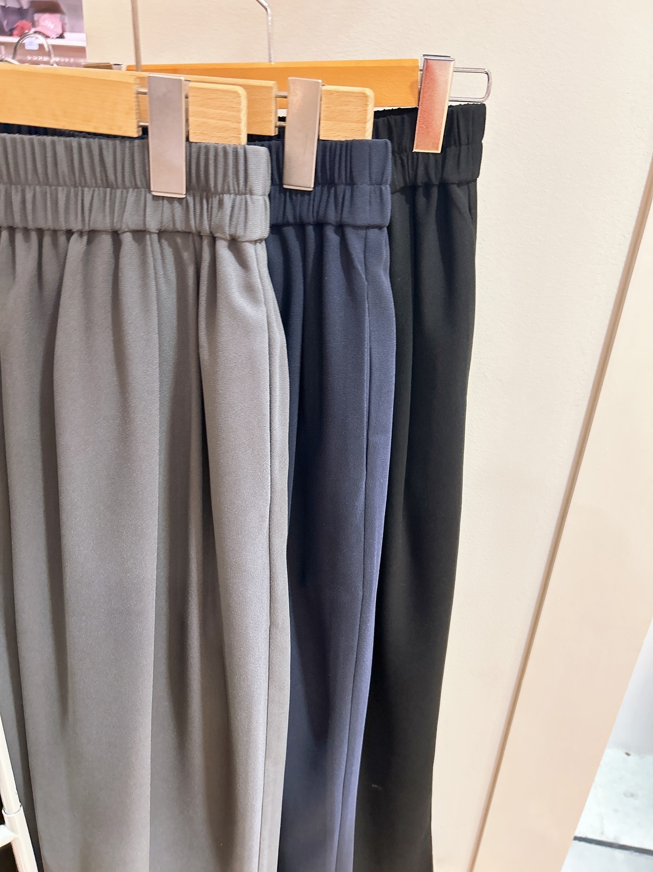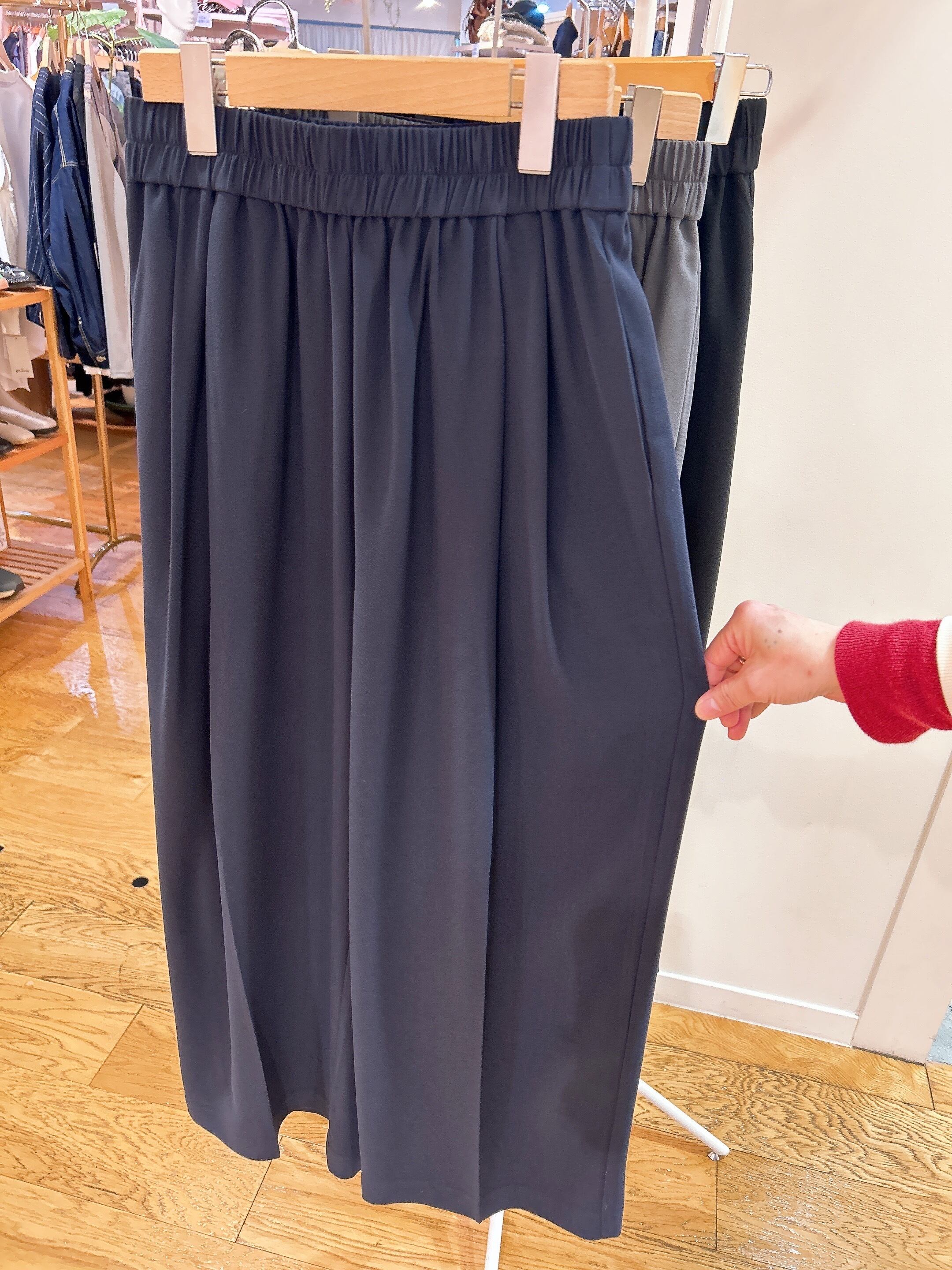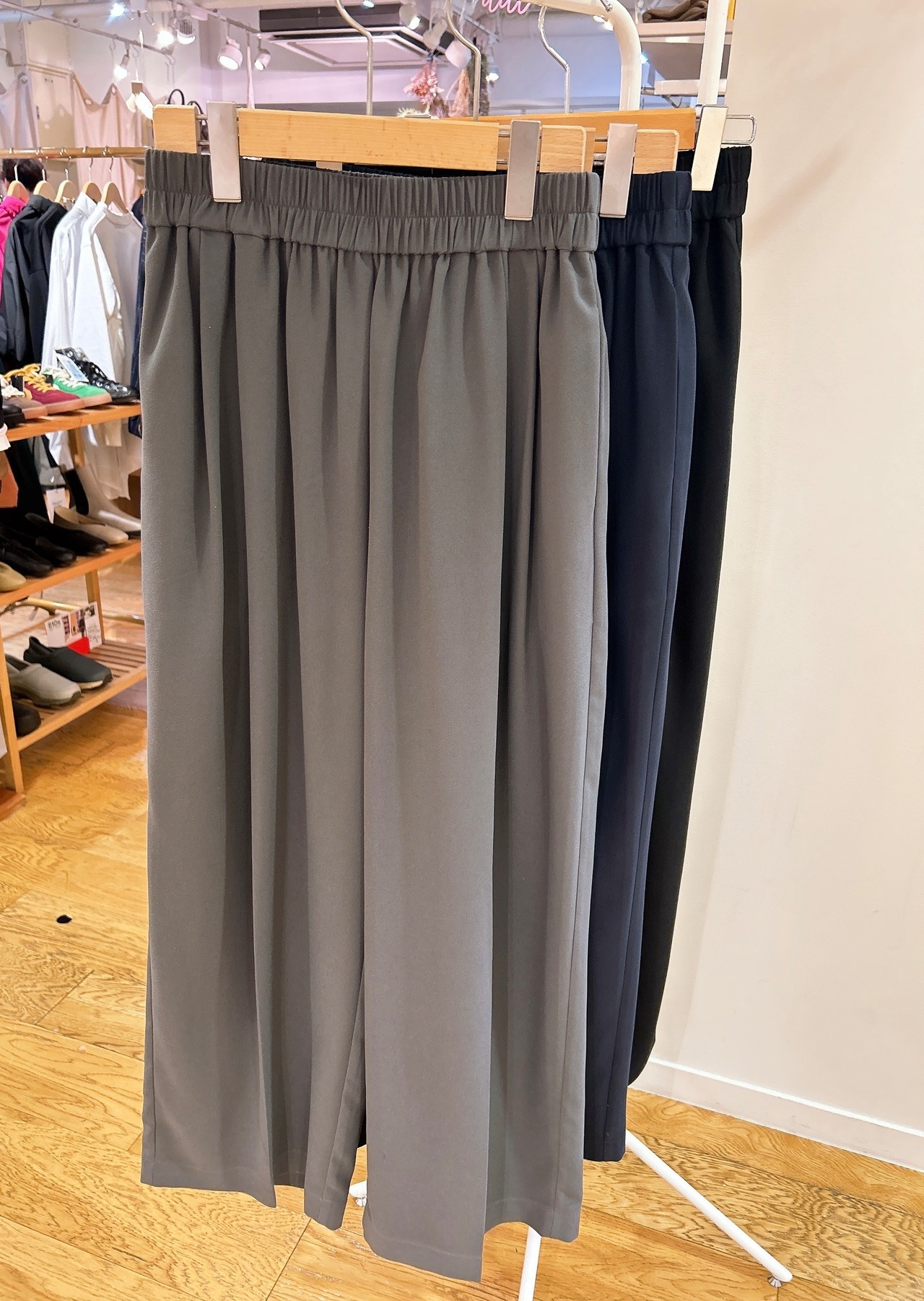 綺麗目、カジュアルにもスタイルを両立させるEMUEのギャザータックパンツ。