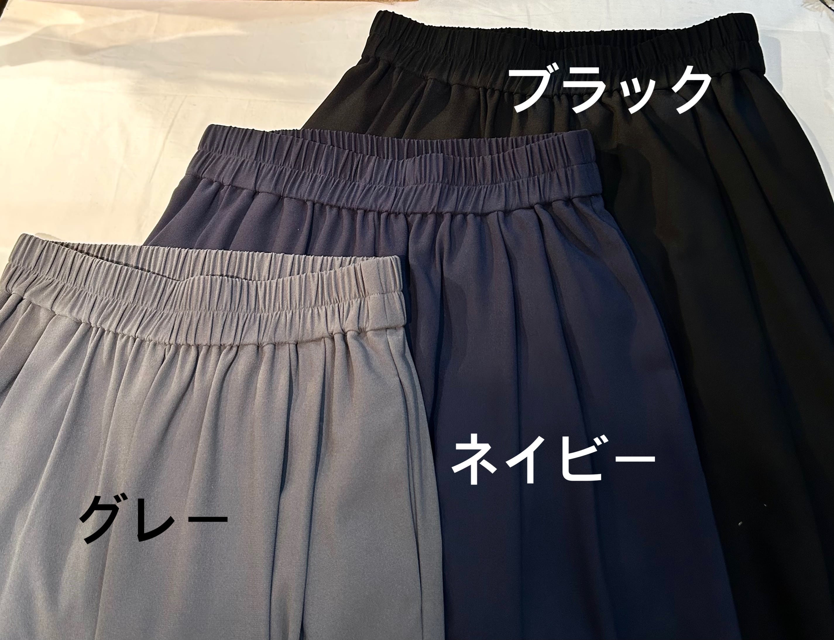 ポリエステルでサラサラ快適な着心地を実感。ウエストは、ゴム使用で楽ちん綺麗が叶います。