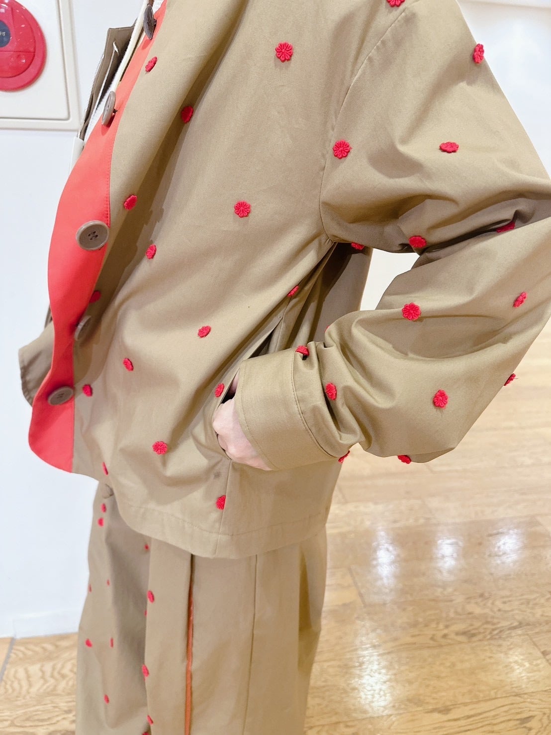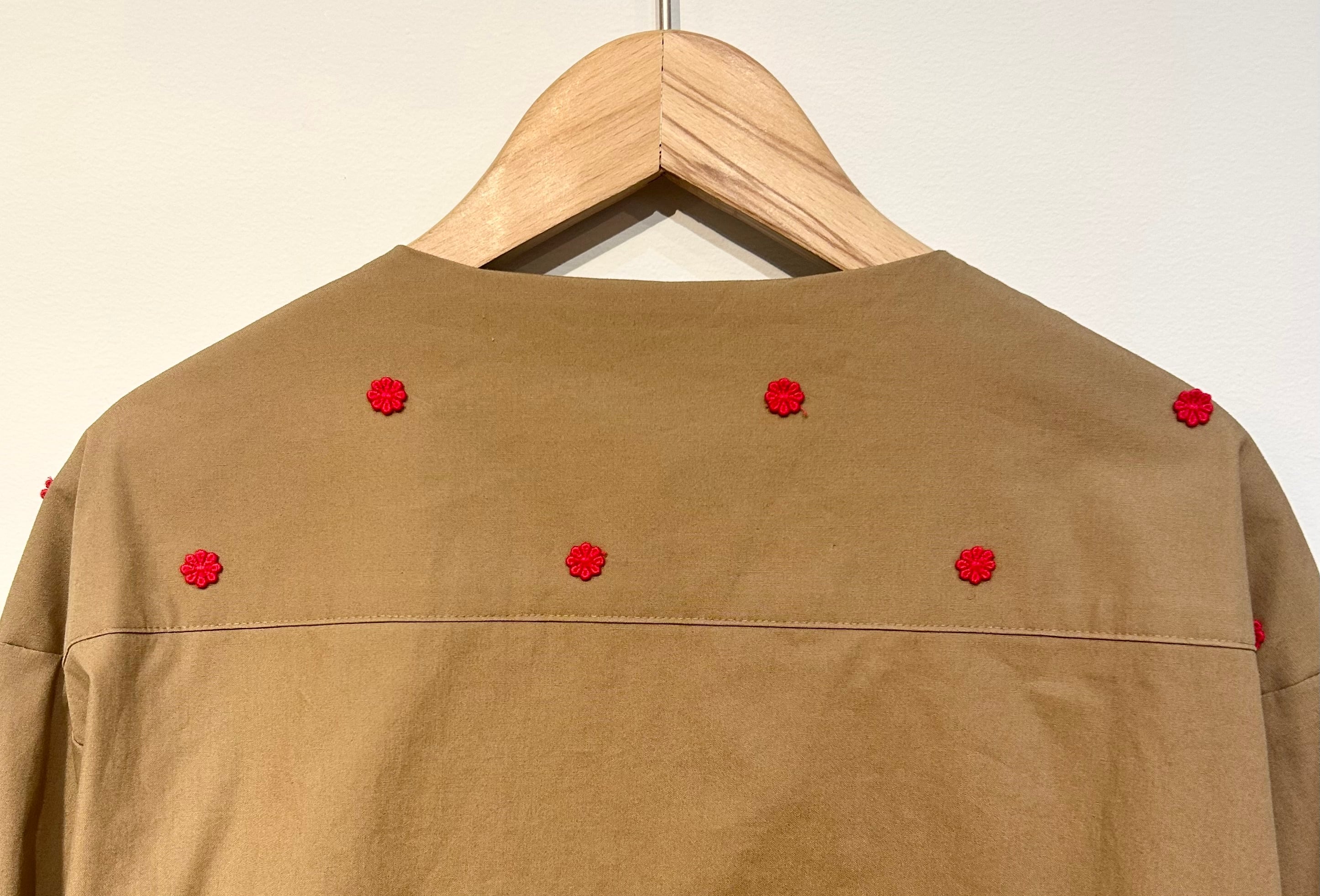 ベースのコットン生地に、小花の刺繍を