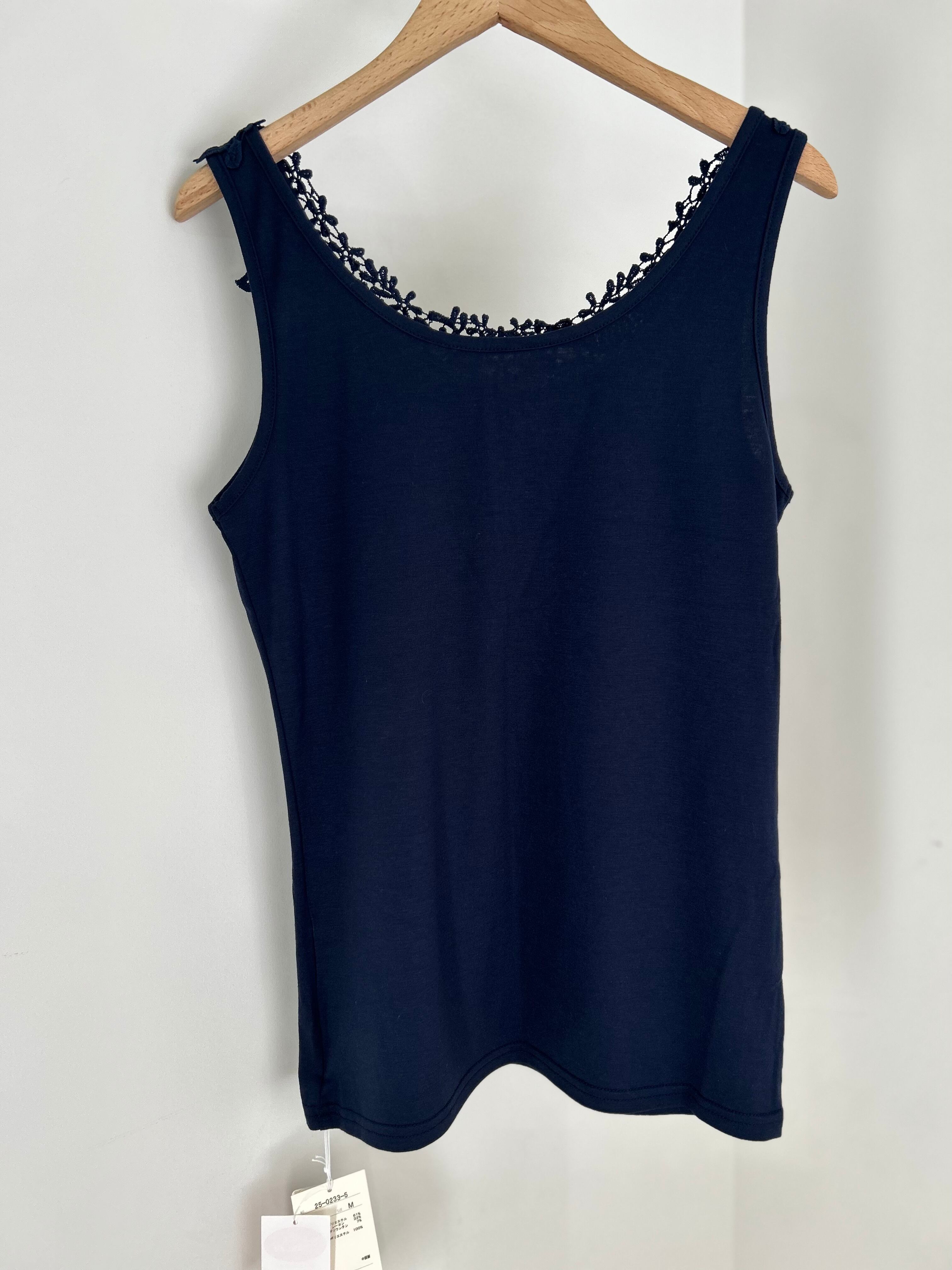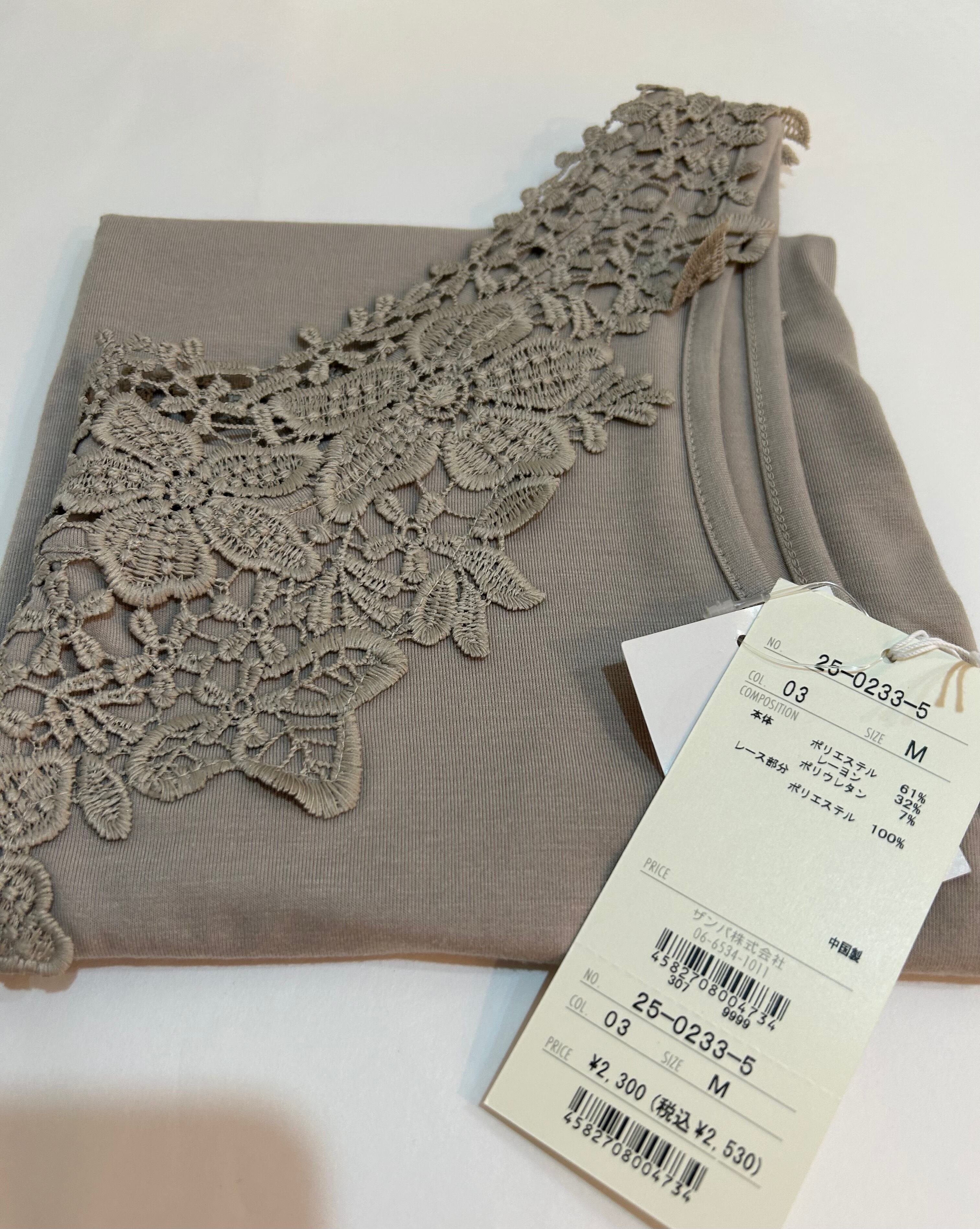 zampaより定番のタンクトップが入荷致しました。デコルテを彩るフラワーレースがフェミニンです。