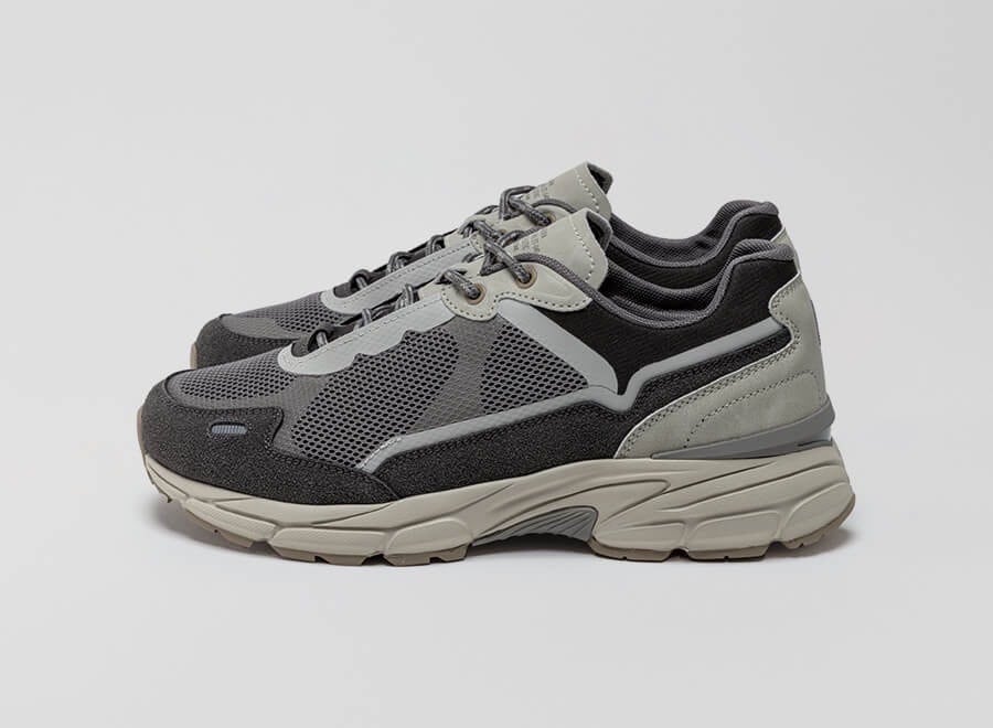 耐久性を考慮した素材をベースにアッパーを構成。屈曲部の重なりを抑え、隠しサドルを搭載することで歩行時の足当たりや横ブレに配慮した設計に。ソールユニットは、衝撃吸収に優れたミッドソールと防滑ラバーを配置したアウトソールで構成し、さまざまな路面で安定したグリップ力を発揮。スマートな佇まいと質実剛健さを兼ね備えたジョグタイプ。