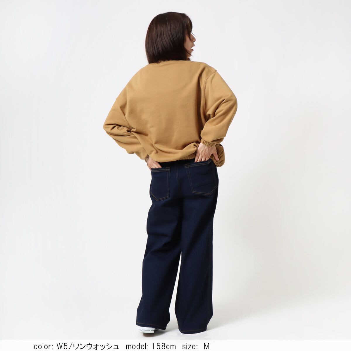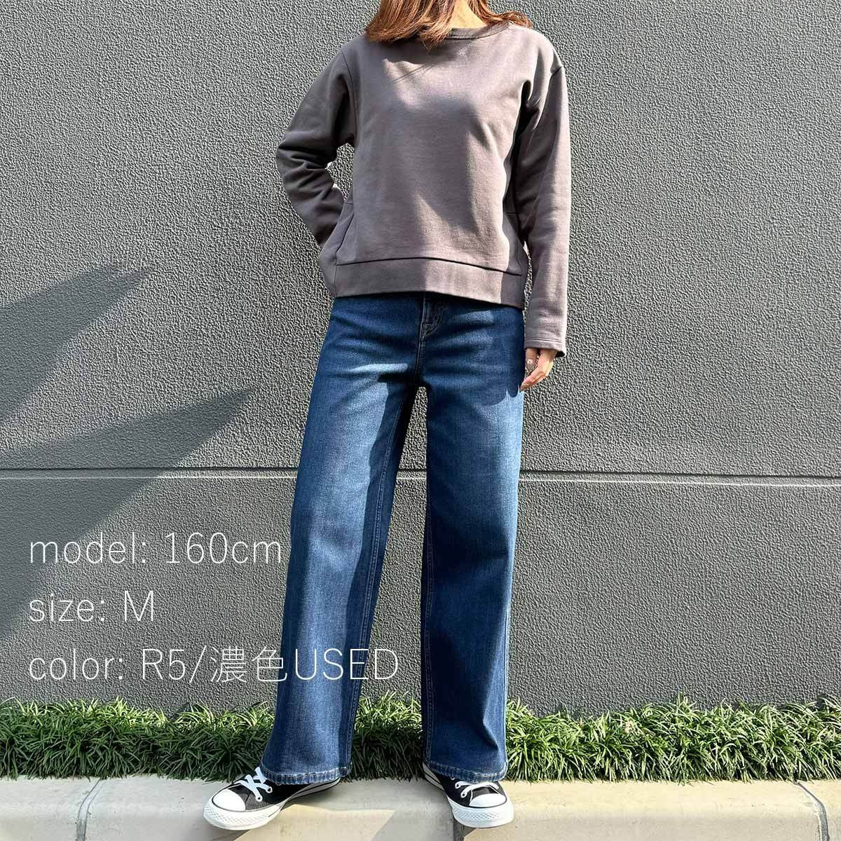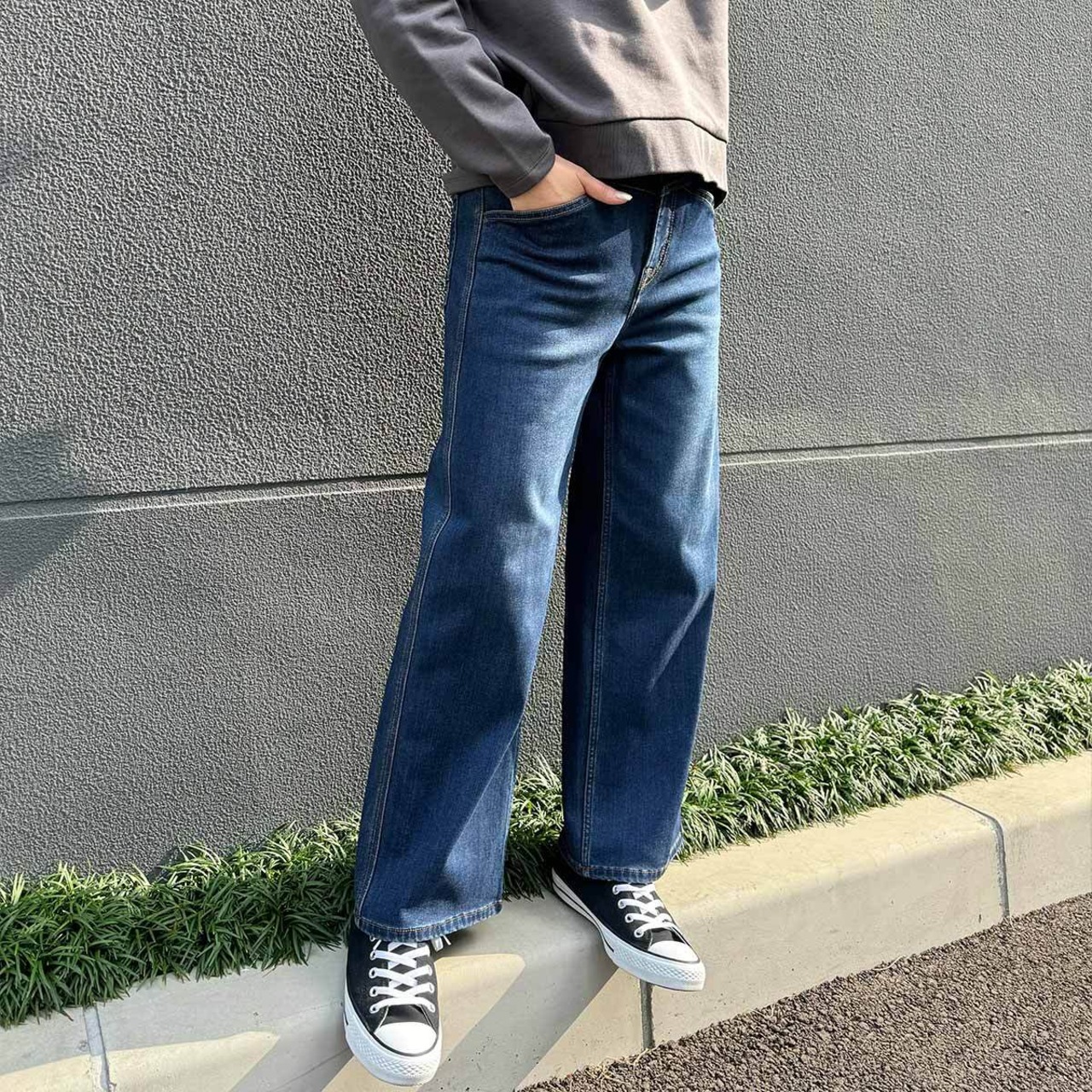 ●腰回りはほどよくフィット。ヒップから裾に向かってまっすぐ落ち太すぎず、細すぎずのワイドストレートシルエットです。